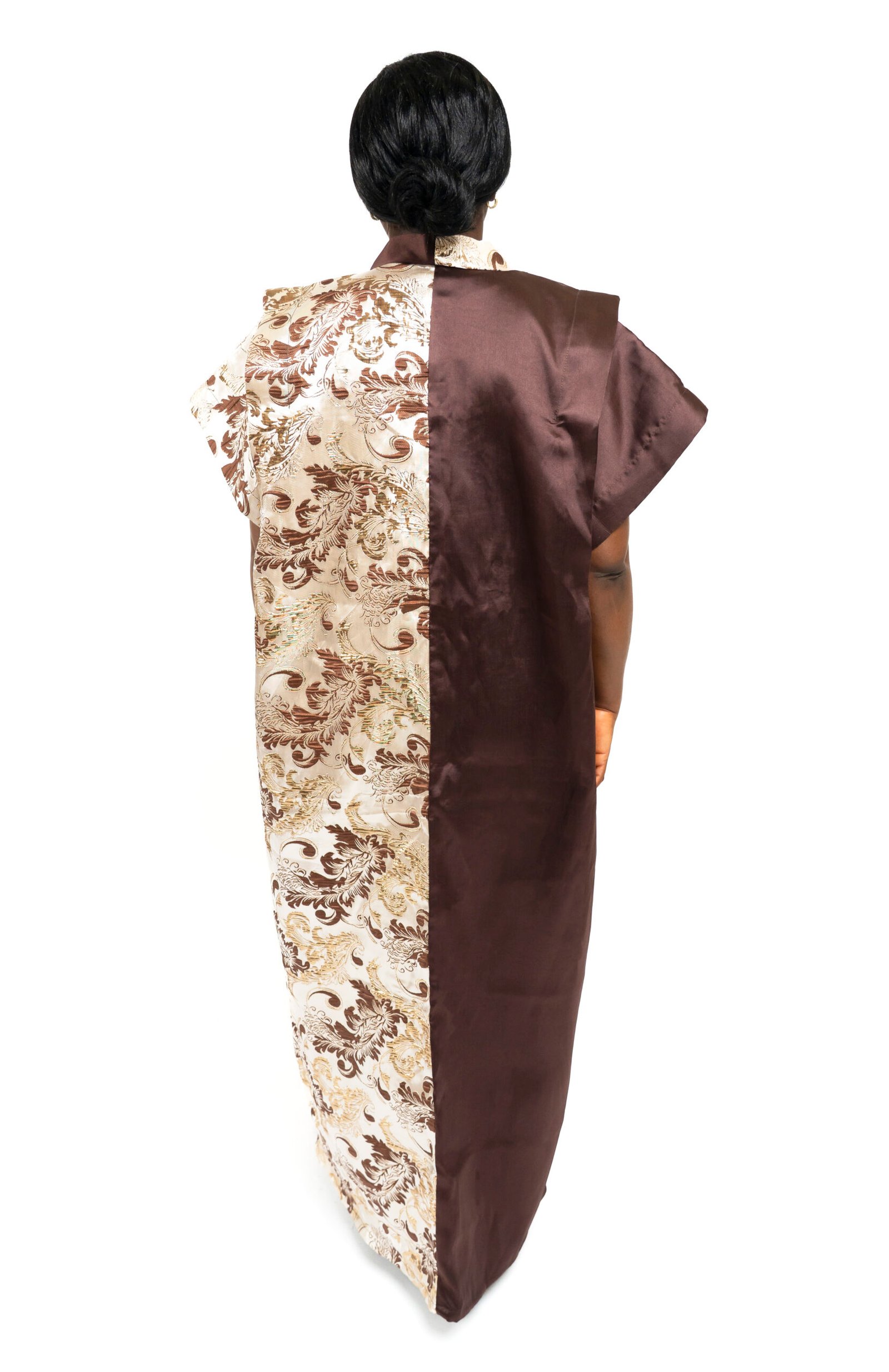 The structured neckline and wide sleeve detail add quiet authority, while the contrasting print introduces subtle visual depth. Perfect for weddings, formal gatherings, and refined cultural events, this maxi dress is made for women who carry themselves with grace.